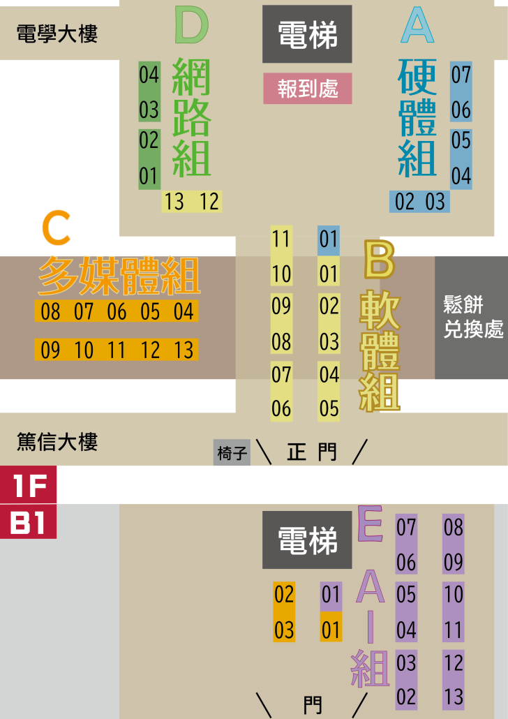 《場復》口試&大合照完才可收工,請協助將自己組別的桌椅搬回1F/2F