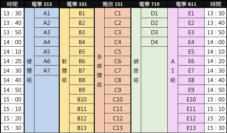 《報告時間》預定口頭報告5min、評審提問3min、換組準備2min