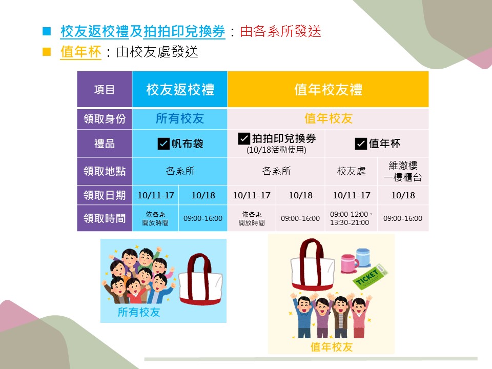 ※校友返校禮返校報到者皆可領取,遠距報到者恕不提供