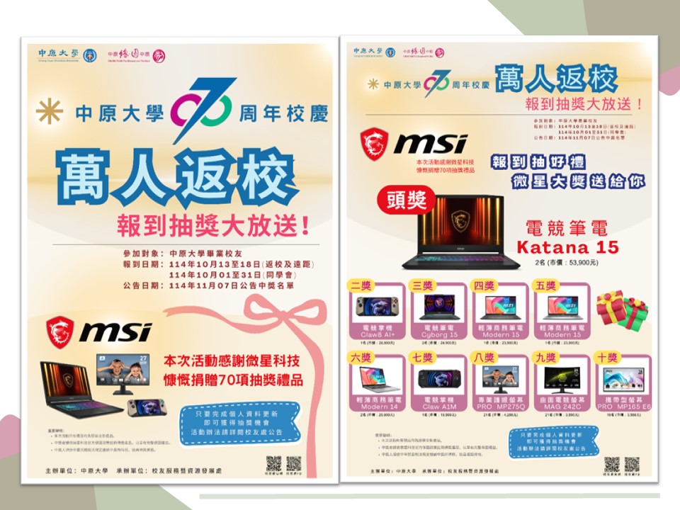 ※今年全校目標「萬人返校」,只要有報到者,不論實體返校或線上報到者,皆可參加抽獎